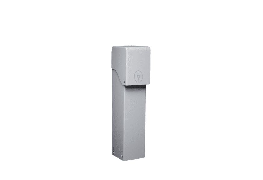 A slim, space-saving pedestal with a lockable flush-style hinged cover, engineered for secure outdoor power in tight spaces. Built from welded stainless steel and rated for wet locations, it delivers long-lasting performance with ADA-compliant height options.